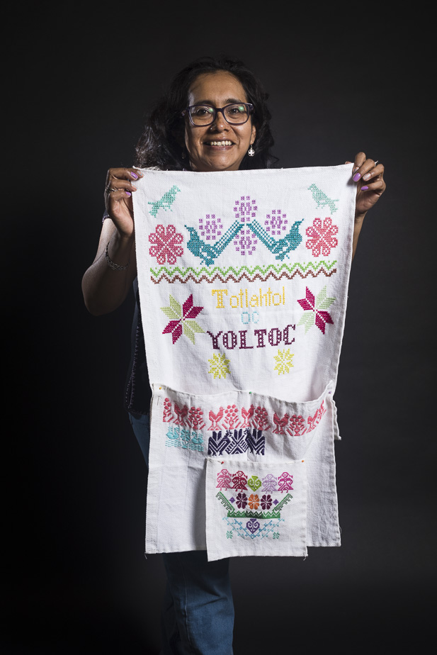 Sesión fotográfica de las compañeras y compañeros del taller de bordado artesanal de la Faro Tlahúac, piezas finales y proceso de ejercicios de bordado.